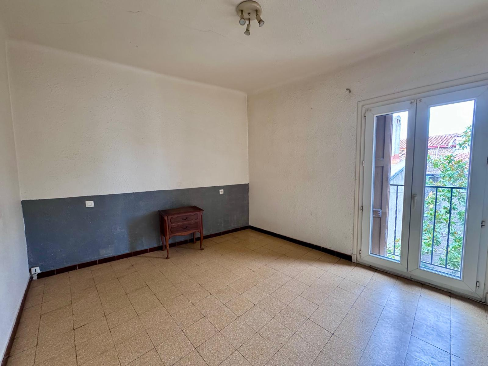 Séjour ouvert sur cuisine/ WC/ 1 fenêtre en simple vitrage/ 1 split