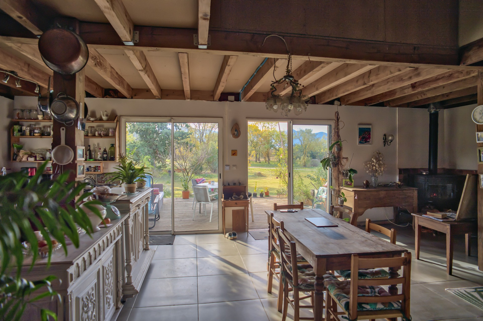 Au RDC elle est composée d'une grande pièce de vie de 42 m², avec cuisine ouverte. Elle communique avec une salle de bain, un WC et une chambre. Une lumineuse porte fenêtre donne accès à une terrasse en bois orientée Sud, avec une magnifique vue sur le Canigou. De très bons moments en perspective !