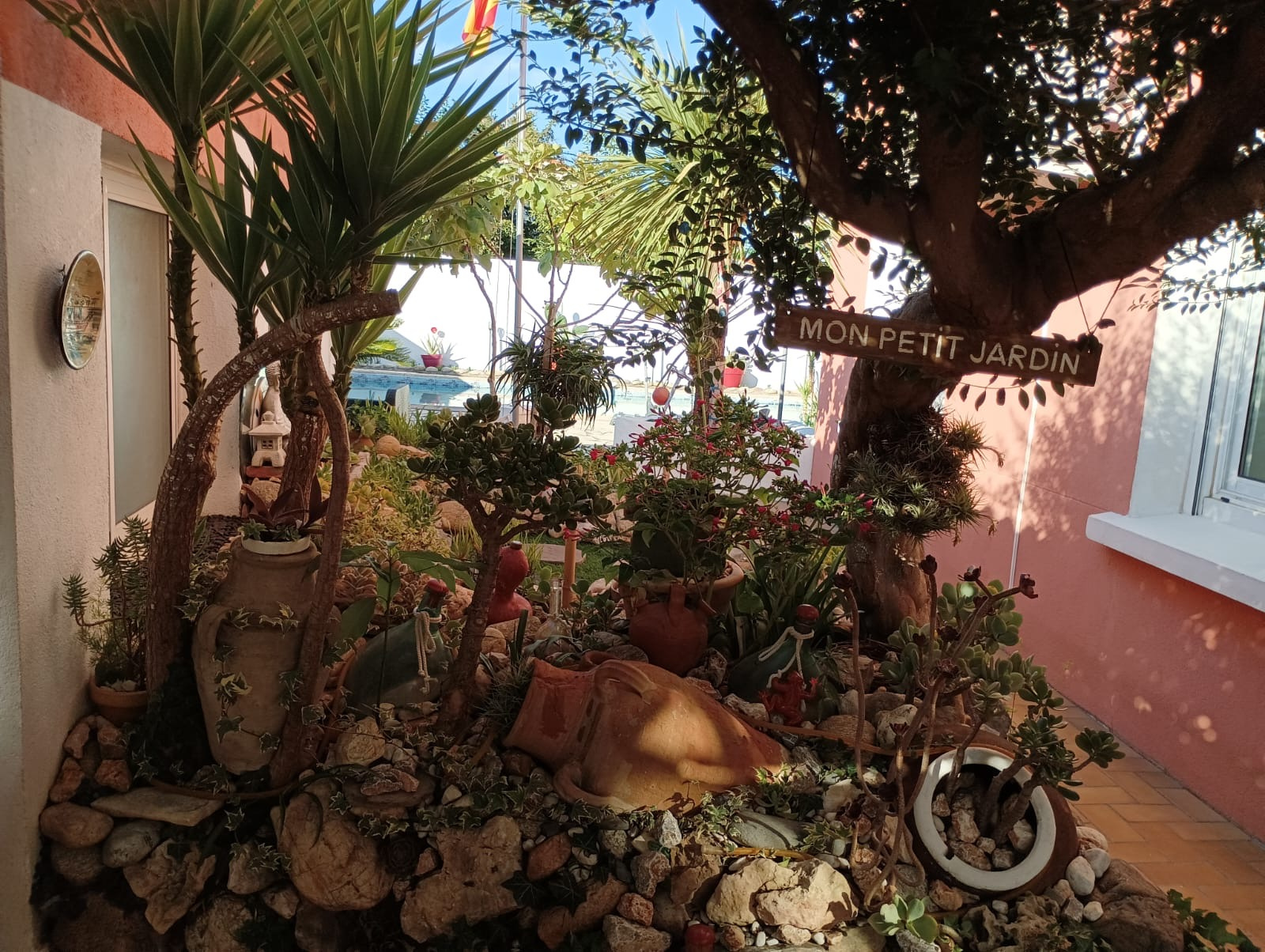 Le clou du spectacle: Des extérieurs généreux avec une magnifique piscine 10x5m, un grand espace détente, une jolie cuisine d'été fonctionnelle, une véritable salle à manger couverte d'extérieur, et plusieurs espaces intimistes SANS VIS A VIS!
