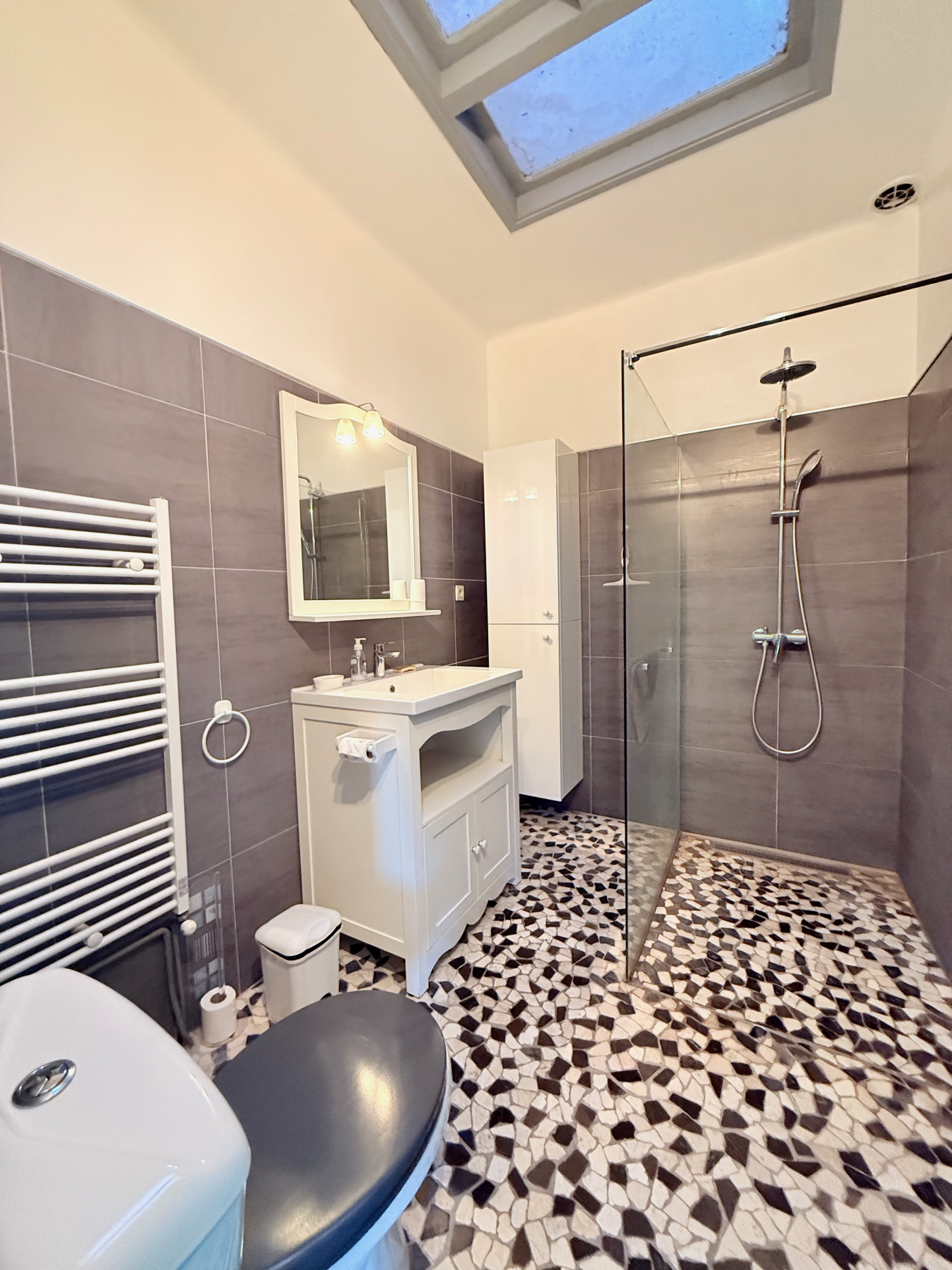 Actuellement divisée en 2 appartements distincts et accueillant une activité de location saisonnière au 1er étage, elle peut très facilement reprendre sa distribution d'orgine afin de pouvoir accueillir une grande famille.